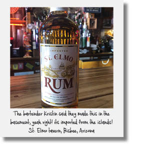 We left the Four Deuces and headed down the street to The Crystal Palace (436 E. Allen St.) where we had a good lunch and cold beer while soaking up the Tombstone vibe. After lunch we had one more stop in town, that being the famous Big Nose Kate's (417 E. Allen St.) just a few steps down the wooden sidewalk. There you'll find yourself virtually drowning in western bric-a-brac. At the time there was a triple threat singer/keyboardist/saxophonist serenading the crowd with standards like Waylon and Willies' Luckenbach Texas. Sometimes he even displayed all three skills at the same time, not an easy feat. At the bar we asked Scott, a local maintaining his usual spot at the edge of the bar, for his advice on what we should drink. He quickly suggested the Old Overholt rye whiskey, and the Ultimate Bloody Mary. He explained that Old Overholt is the oldest whiskey in the country and Doc Holiday's favorite drink. Bartender Kip poured the righteous rye and then proceeded to hand craft a glorious Bloody Mary, it really was the ultimate. While enjoying our drinks and the familiar tunes Scott gave us some intriguing leads for Bisbee. After paying the tab we were back out in the hot sun looking for the next stage out of town.