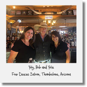 James and Yolie here, back from our latest bucket list bar adventure. This time Arizona was our destination. We arrived at Phoenix Sky Harbor airport early Friday morning where we were picked up by friends, Jamie and Yoly. Yes, you read that right. We'll try to keep things straight. Jamie was our dedicated designated driver for the weekend while Yoly navigated us in their oversized pickup truck, which we nicknamed...the aircraft carrier. After climbing in we headed for Tombstone, a picturesque 180 miles to the southeast.