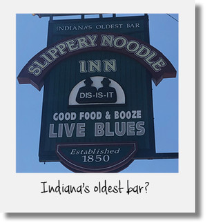 Bartender Kory greeted us again and served us some local drafts. The Knickerbocker is a good looking bar with two interesting features. The walls are covered with pictures of the oldest bar in each of the 50 states and the District of Columbia. We've been to many of the pictured bars and it was evident that the Knickerbocker was proud to take its place among them as the oldest in Indiana. We know, there's that Slippery Noodle matter, but you can decide for yourself. The other interesting feature was a piano at the front door with an advertisement for Ryan Rollins the Piano Man. Besides loving old and unique bars we're suckers for a good piano bar. As a matter of fact, we met at Middleton Tavern's upstairs piano bar during Maryland piano man legend, Larry Lay's, opening set. Oops, took a little stroll down memory lane there, now let's get back to the Knickerbocker. Unfortunately, we had to leave for Michigan around 6:00 PM so we couldn't hang around to hear Ryan. But, to our great surprise he was sitting next to us the whole time. Ryan offered to play for us right then! What a treat! Ryan took his place at the piano and put on an impromptu show for the handful of customers on that hot Friday afternoon. Ryan was awesome, but his Hotel California duet with Yolie was the highlight of the set. Sadly, we had to leave Ryan after 45 minutes but he was still rocking the joint as we headed out the door.
